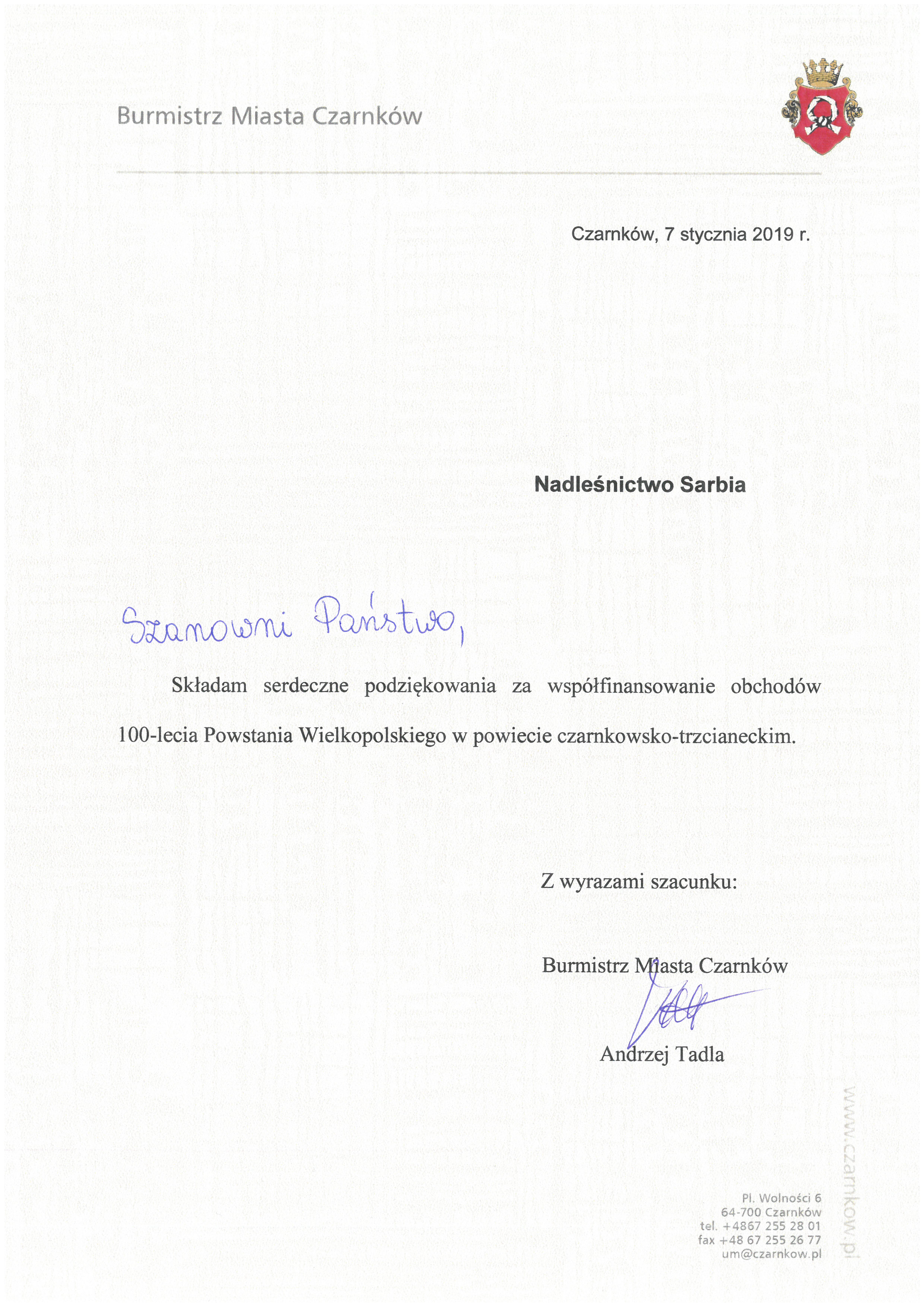 Podziękowania 2019