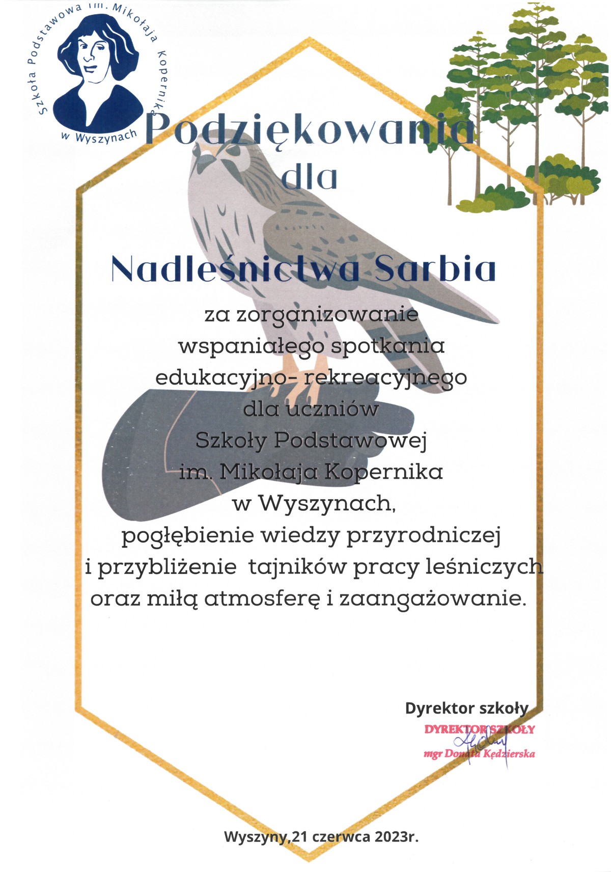 2023_04_05 - Podziękowania 2023 - Szkoła Podstawowa im. Mistrzów Sportu w Sarbi