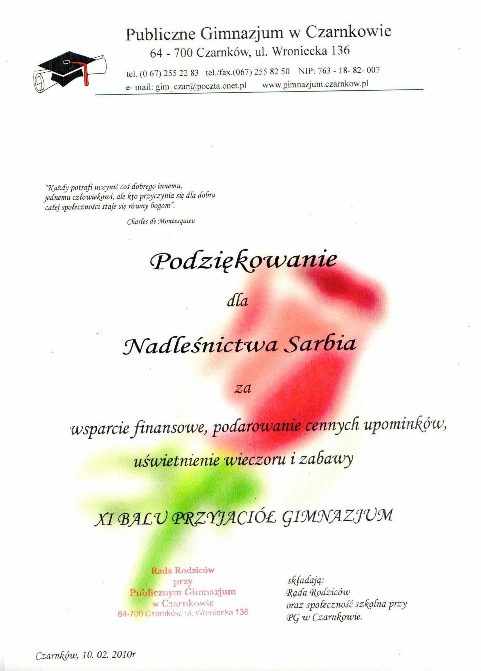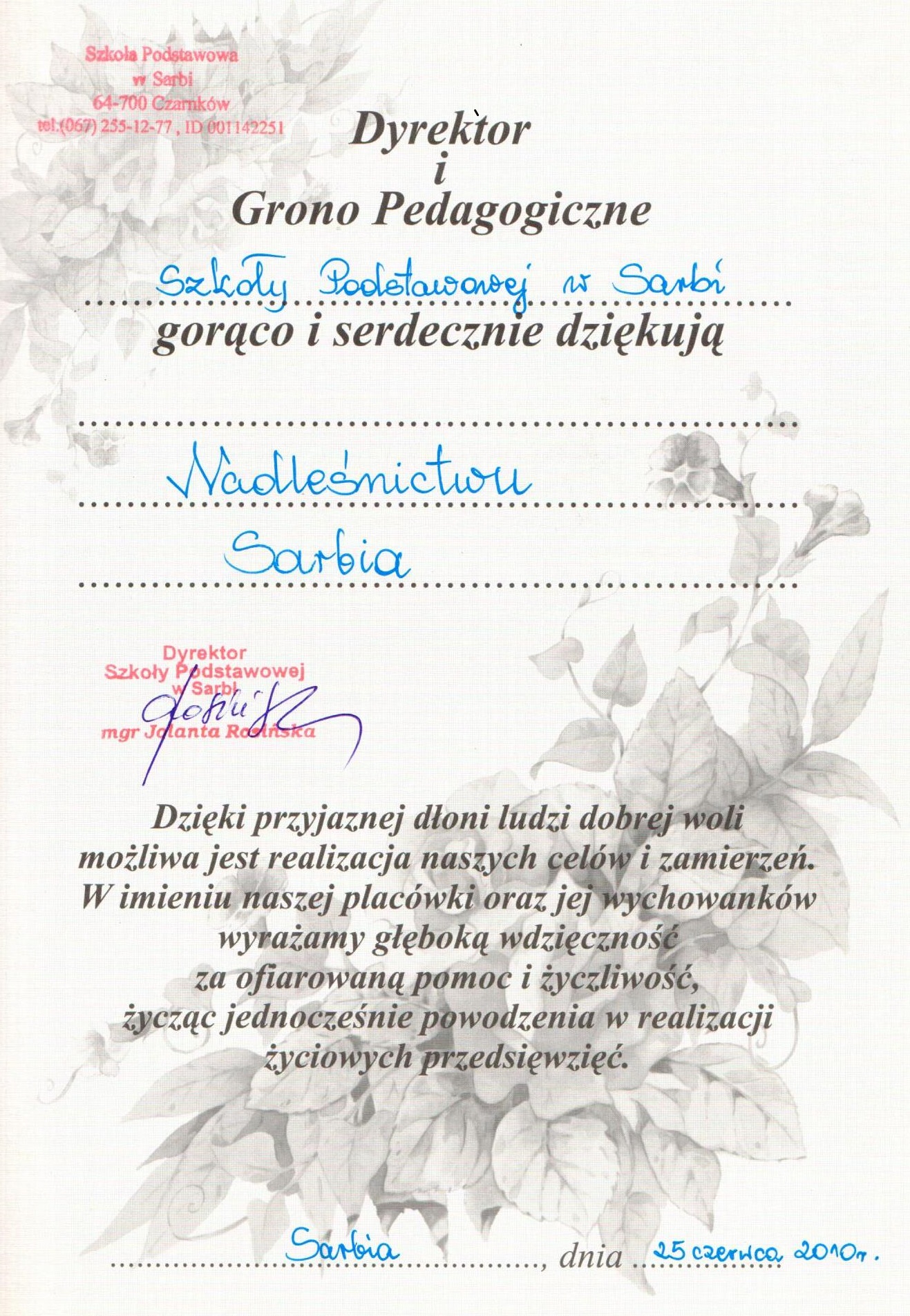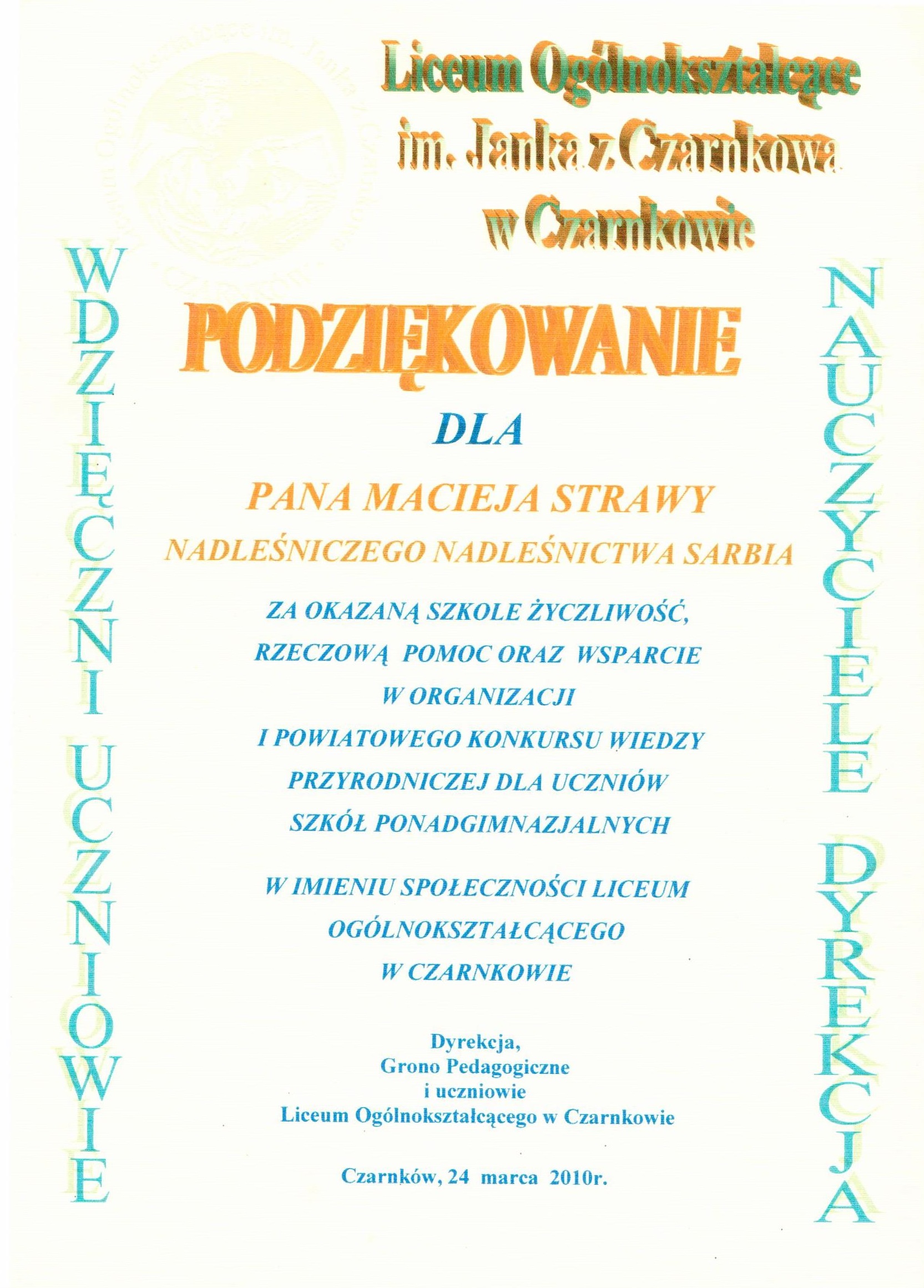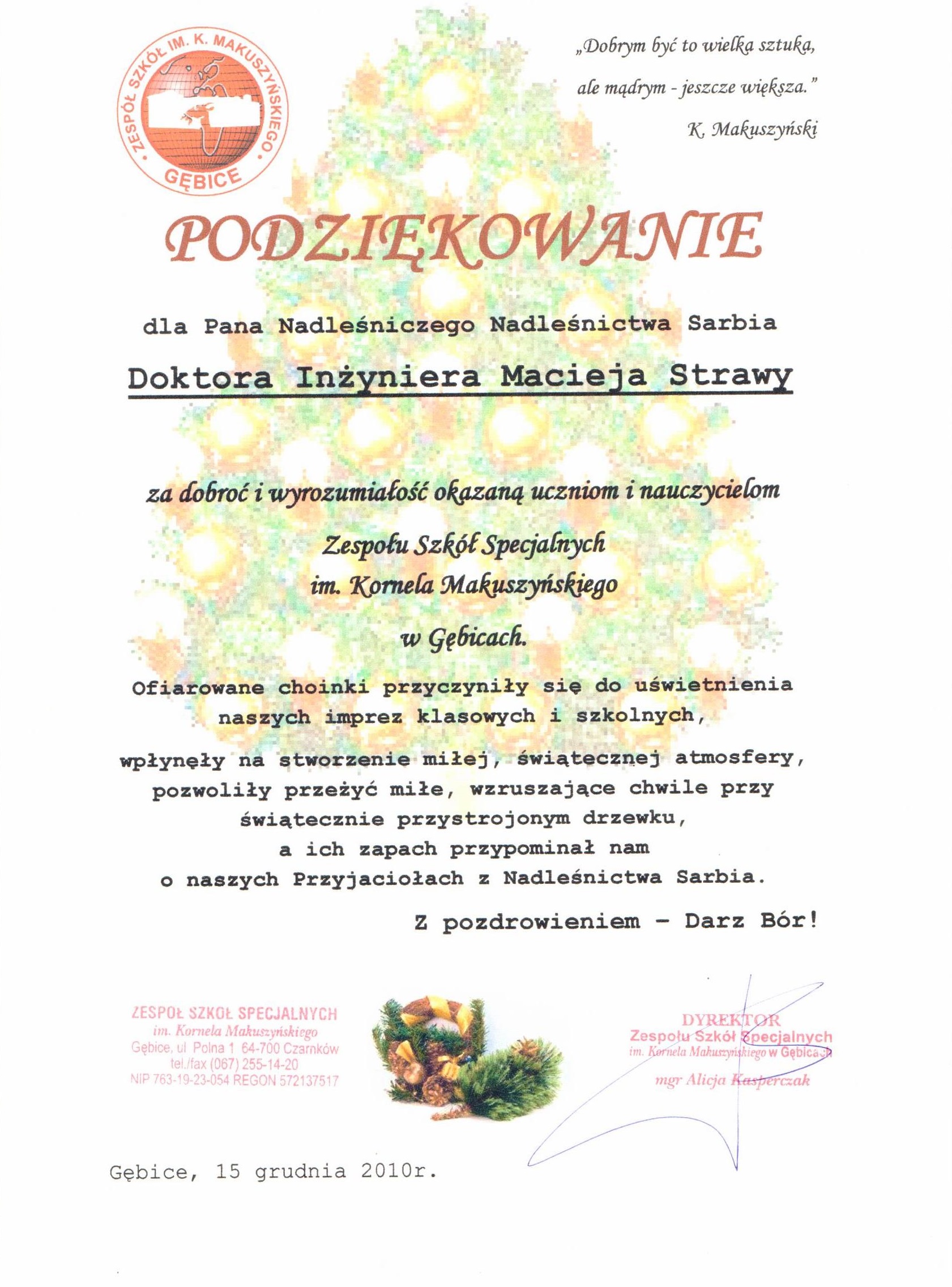 Podziękowania rok 2010