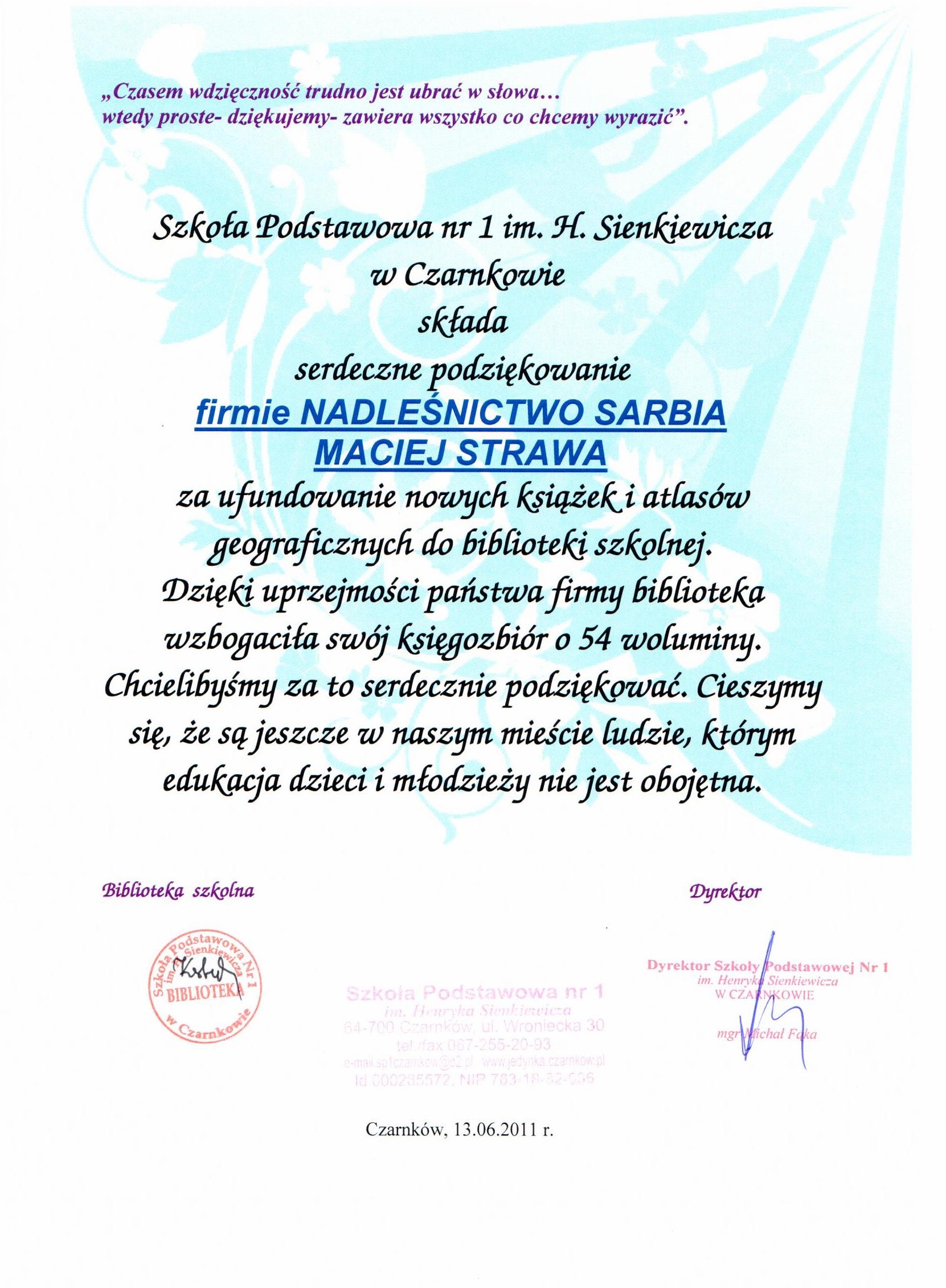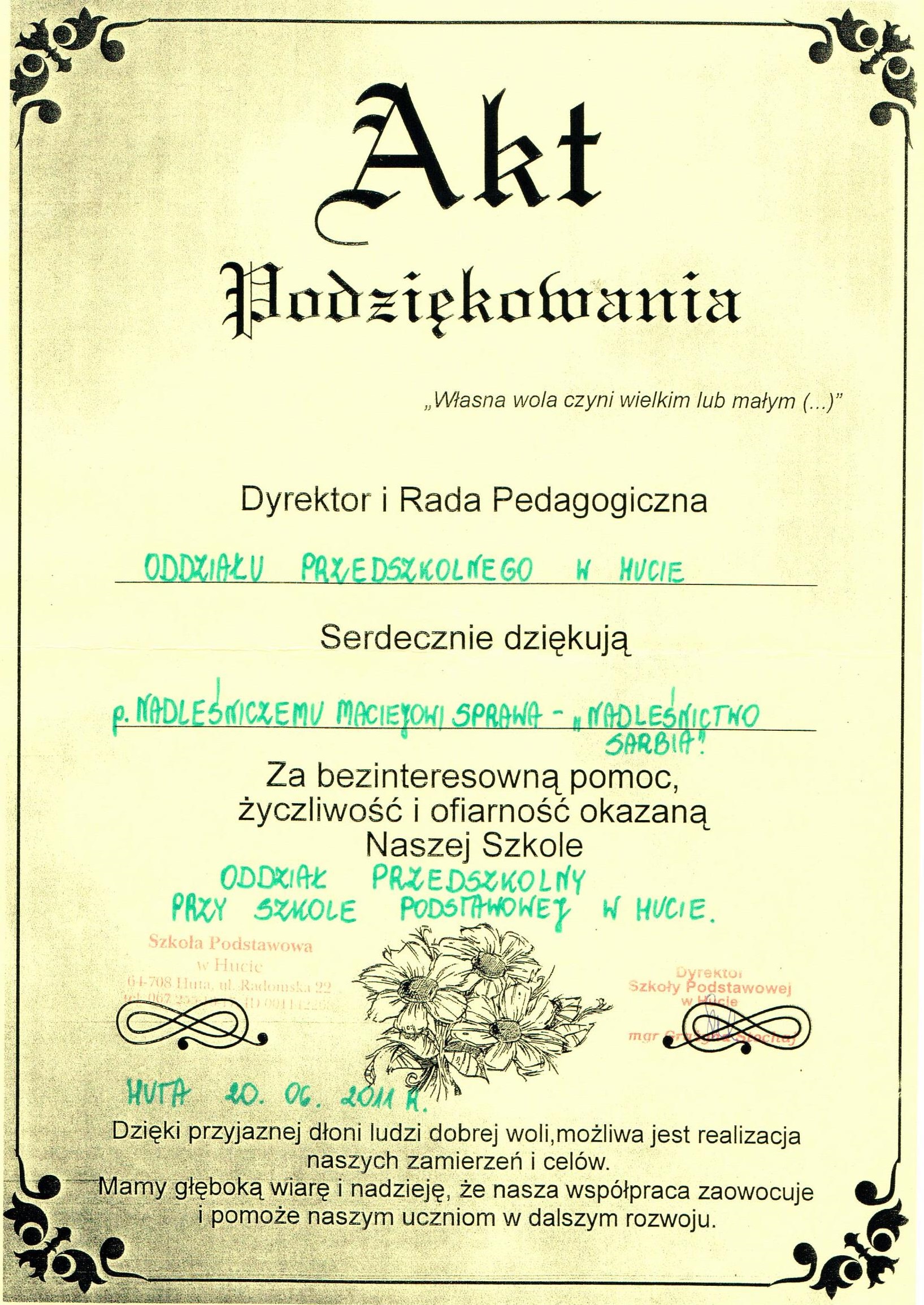 Podziękowania rok 2011
