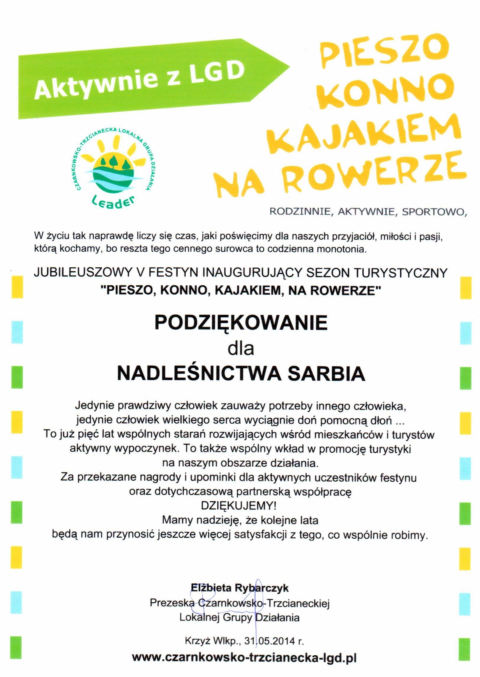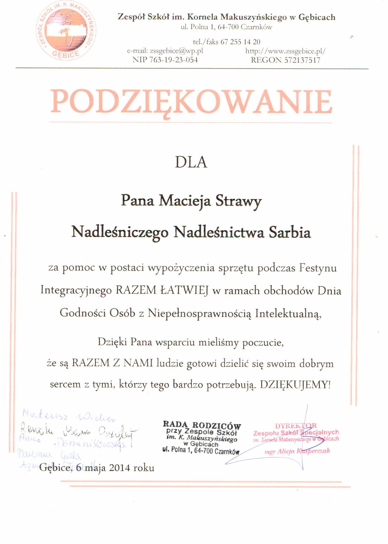 Podziękowania rok 2014