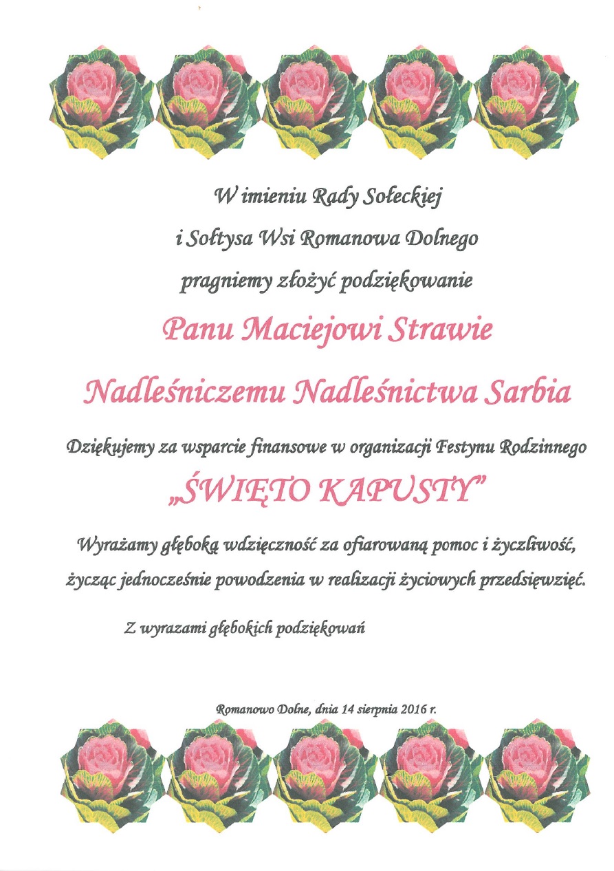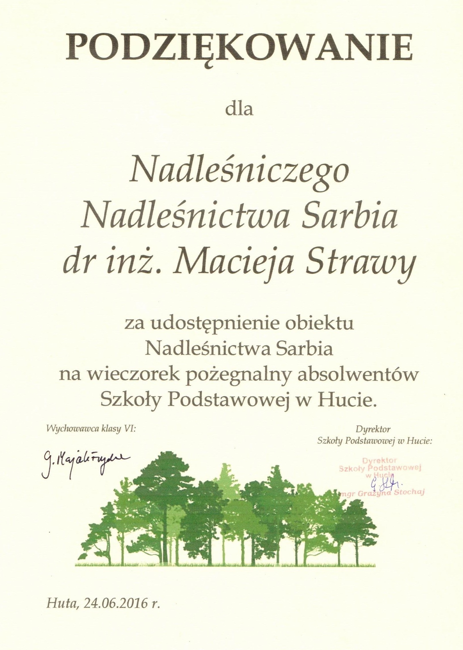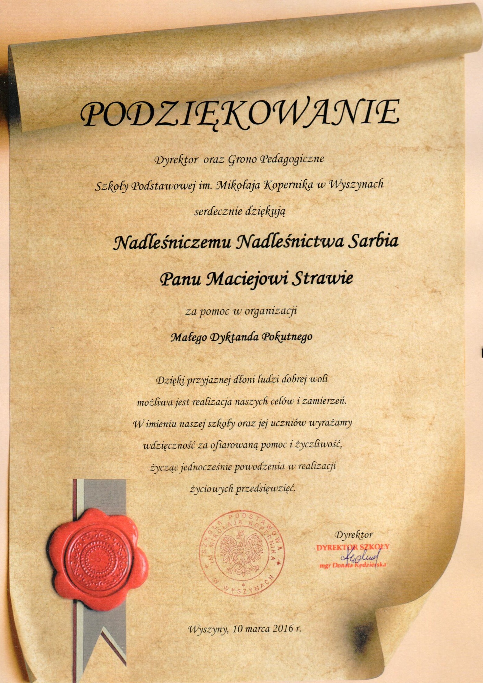 Podziękowania rok 2016