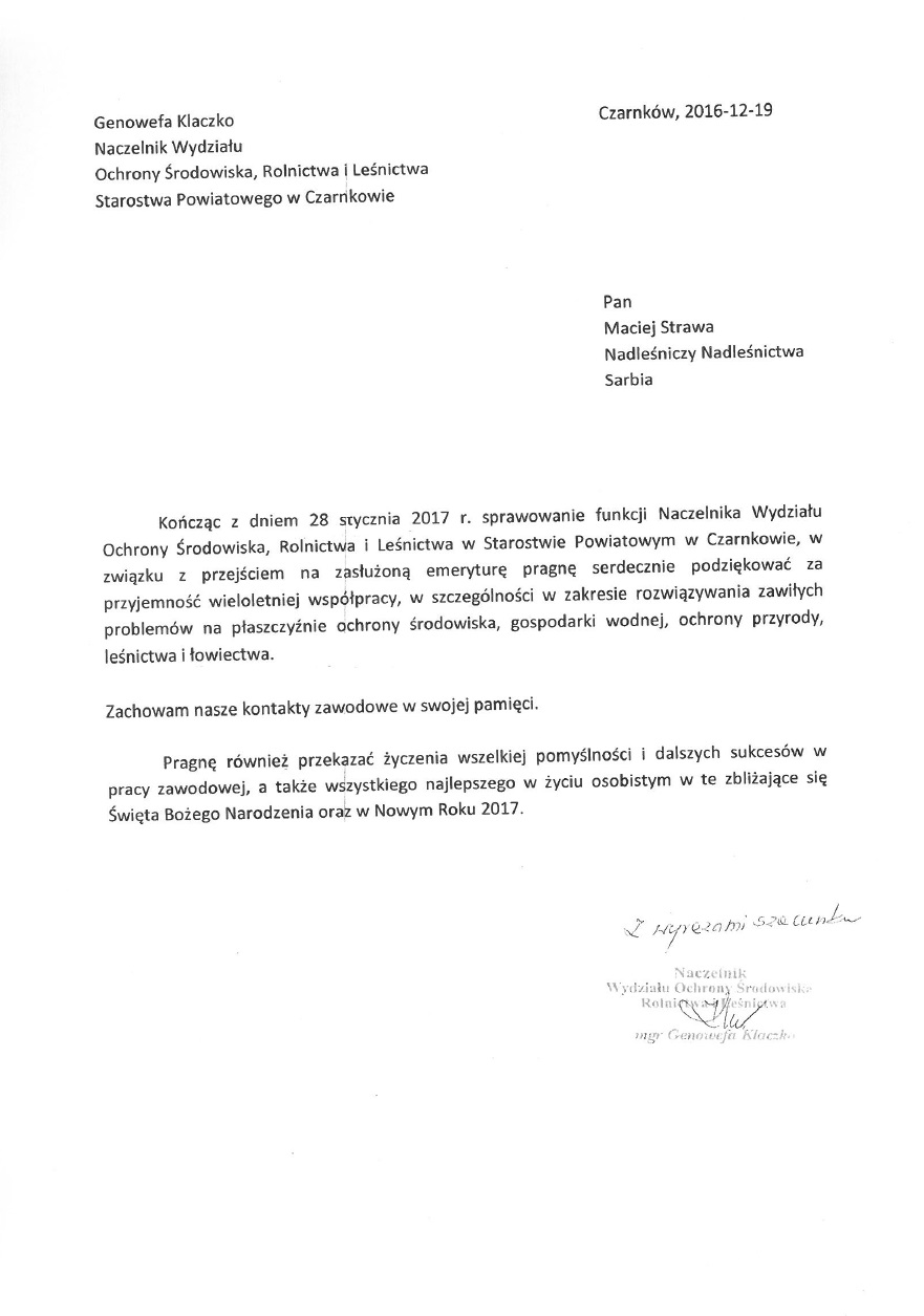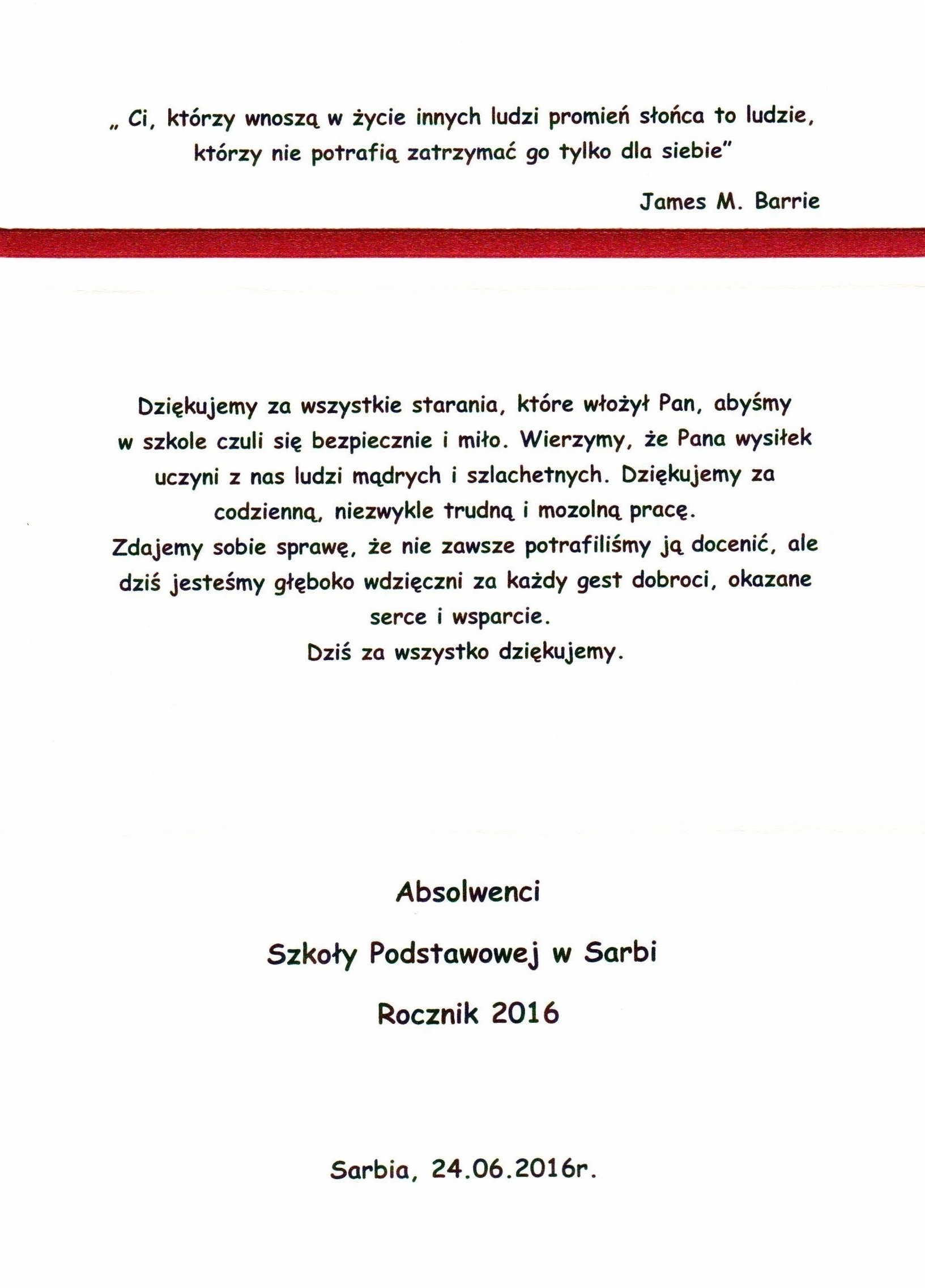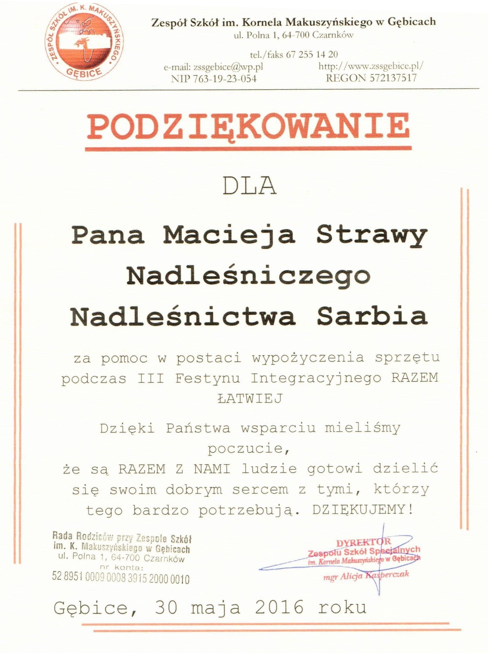 Podziękowania rok 2016