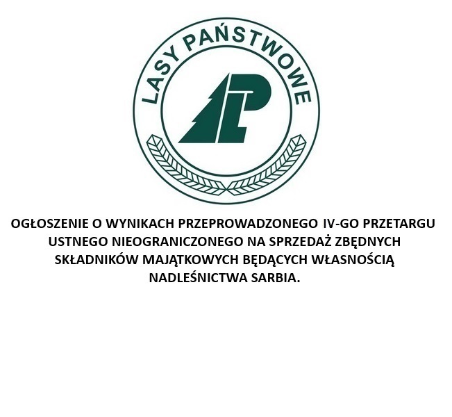 Ogłoszenie o wynikach przeprowadzonego IV-go przetargu ustnego nieograniczonego na sprzedaż zbędnych składników majątkowych będących własnością Nadleśnictwa Sarbia.