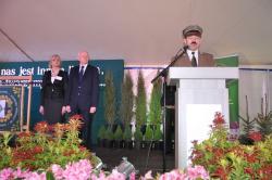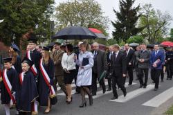Po tej części nastąpiło odsłonięcie i poświęcenie tablicy pamiątkowej, umieszczonej w budynku szkoły.