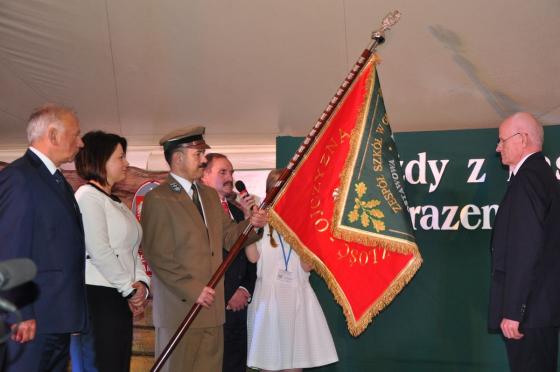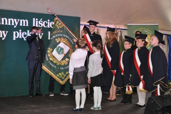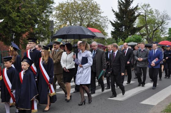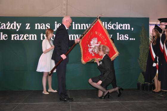 Po nabożeństwie zaproszeni goście, nauczyciele, uczniowie Zespołu Szkół i ich rodzice w asyście pocztów sztandarowych ruszyli w uroczystym pochodzie przy akompaniamencie orkiestry w kierunku szkoły. Wśród zaproszonych gości było wiele znamienitych osobistości, m.in. przedstawiciele władz – rządowych, samorządowych, oświatowych, naukowych, lokalnych, sektora gospodarczego, a przede wszystkim reprezentanci patrona – leśnicy. Po przemarszu i części oficjalnej, sztandar został przekazany na ręce dyrektor szkoły Beaty Maszewskiej.