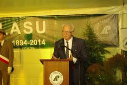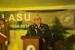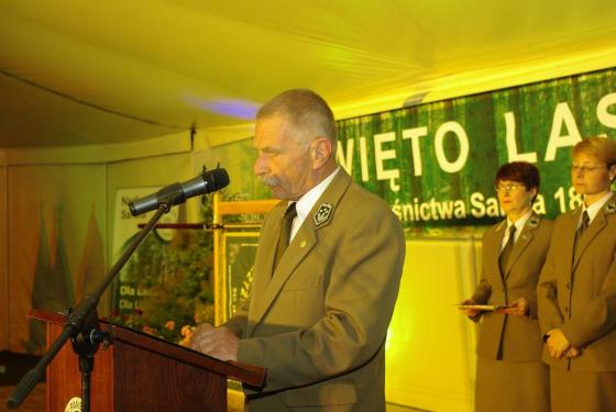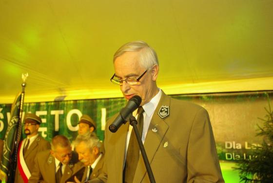 Stanisław Gajowski odczytuje Akt Fundacyjny Sztandaru Nadleśnictwa Sarbia. (Fot. Radosław Napierała)