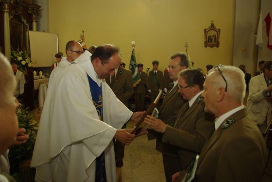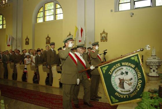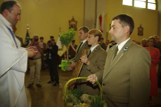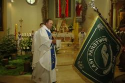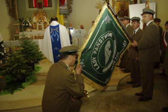Poświęcenie sztandaru Nadleśnictwa Sarbia przez ks. Jerzego Ranke. (Fot. Radosław Napierała)