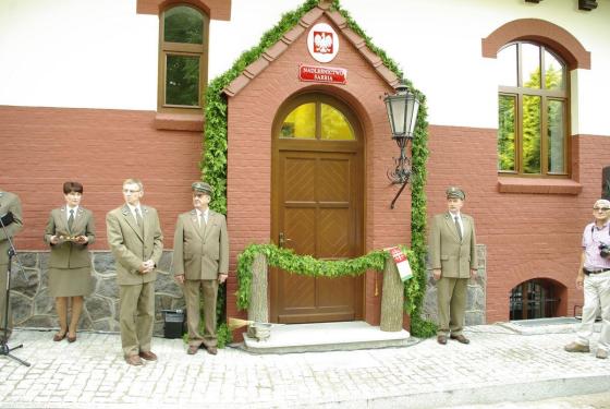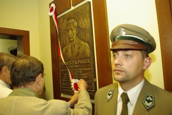Po oficjalnym otwarciu budynku nastąpiło odsłonięcie tablicy pamiątkowej poświęconej przedwojennemu Nadleśniczemu Franciszkowi Piaskowi. Odsłonięcia dokonali bratankowie Franciszka Piaska.