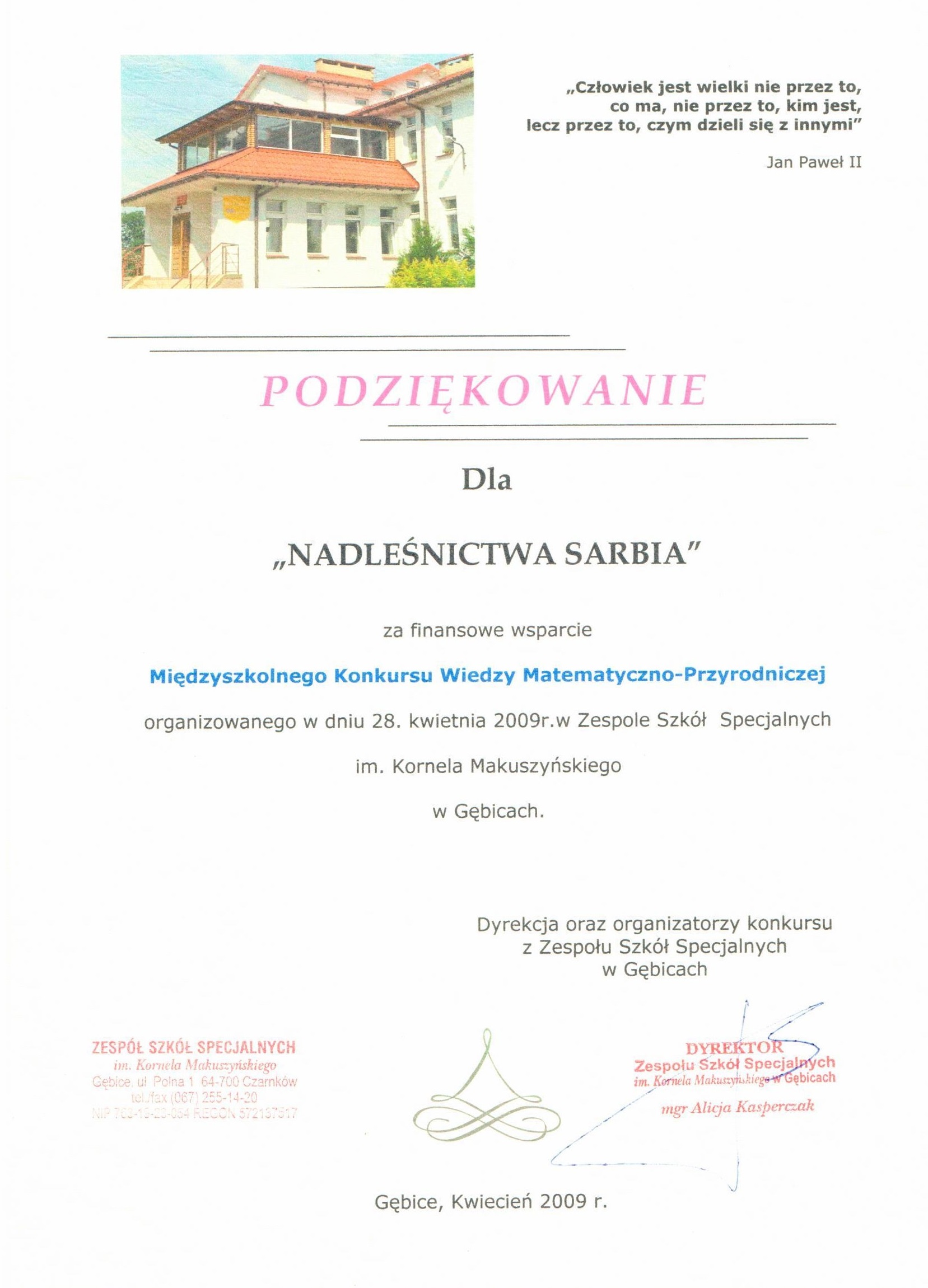 Nadleśnictwo Sarbia powstało z połączenia w 1971 r. dwóch sąsiadujących ze sobą Nadleśnictw: Sarbia i Wyszyny.