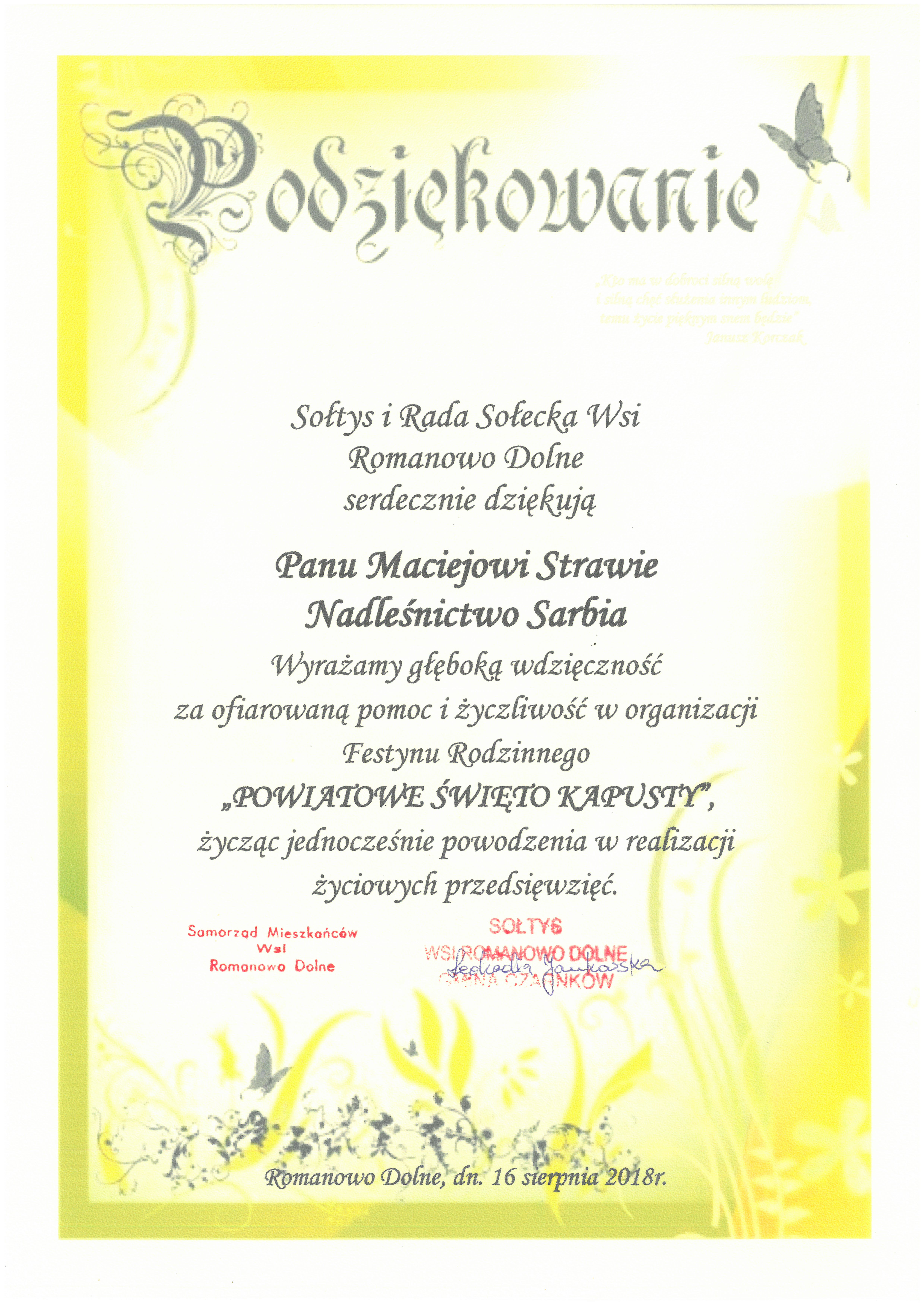 Podziękowania 2018